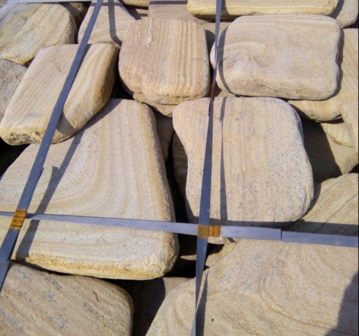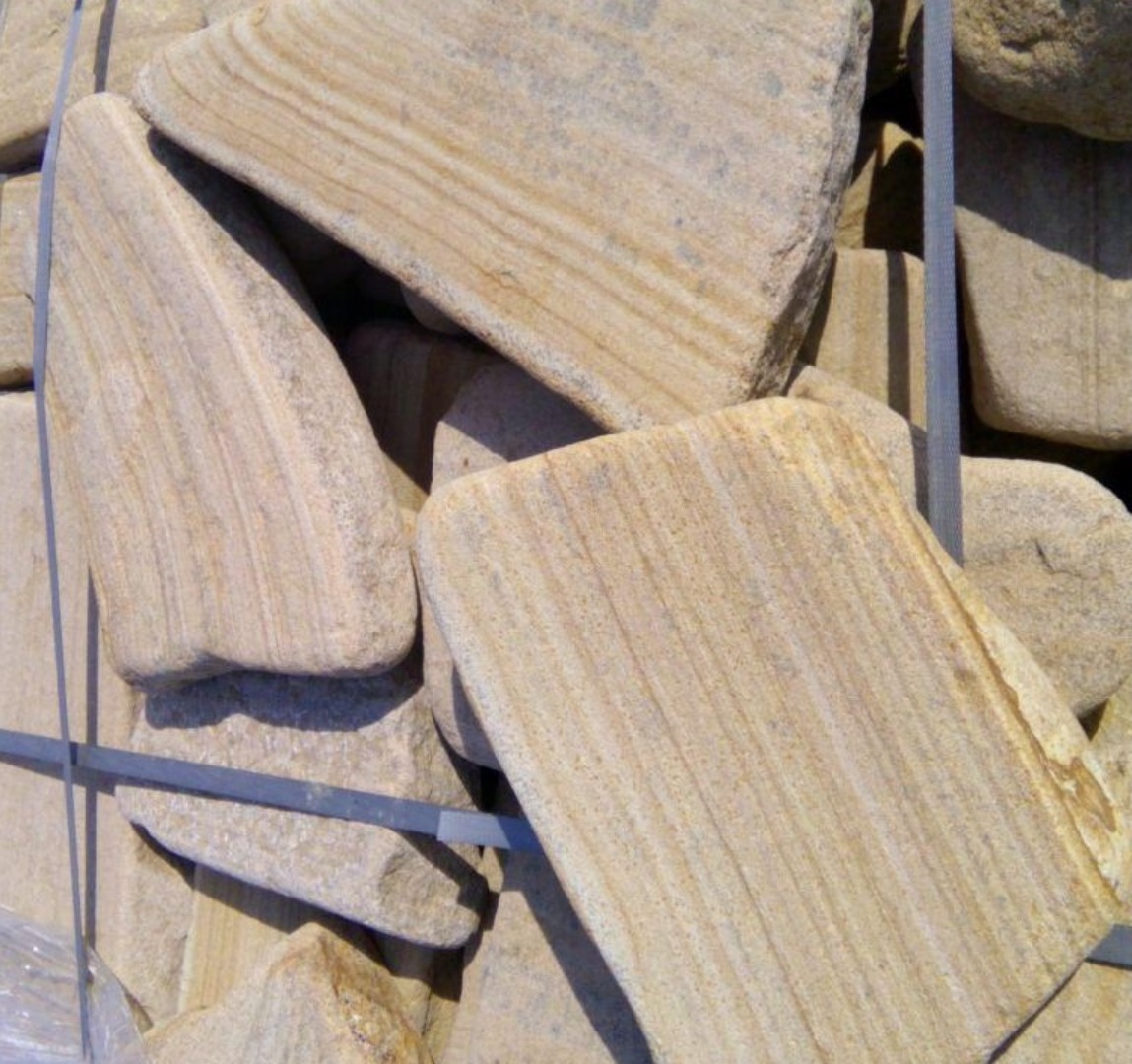 Kamenclub.ru: песчаник пластушка галтованный желтый с рисунком (3 см) купить в Ярославле - заказать природный камень по низким ценам оптом с доставкой от производителя - kamenclub.ru