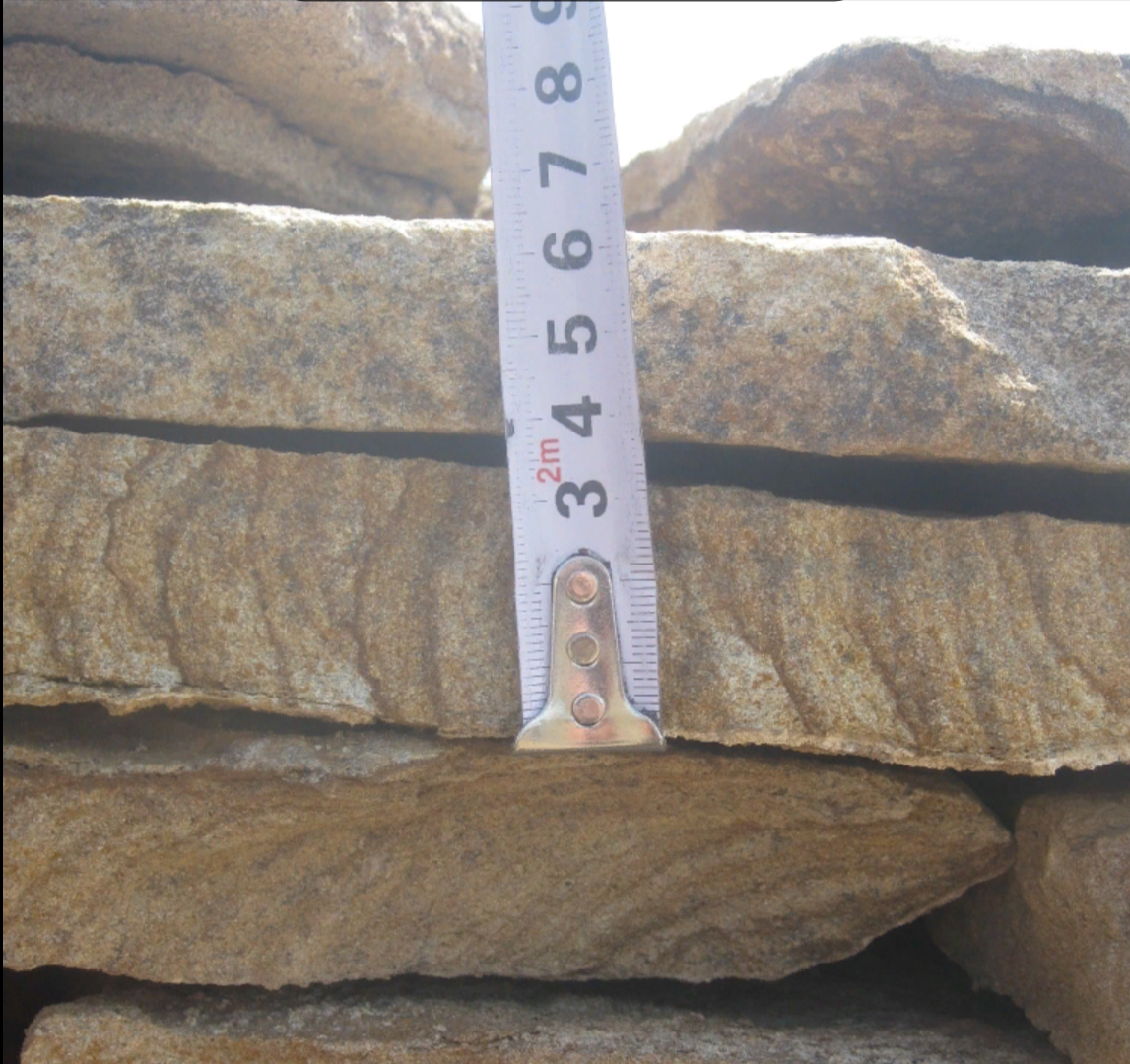 • Kamenclub.ru: Песчаник пластушка желтый с рисунком (3 см)  купить в Ярославле песчаник желтый с рисунком, рыжий, желтый песчаник пластушка ландшафтная рваная 8 500 руб/м3   фото КАМЕНЬ КЛУБ