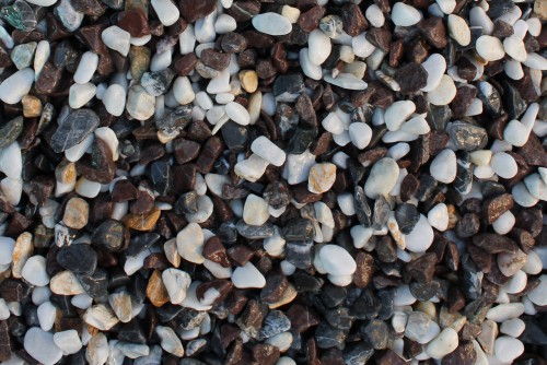 Kamenclub.ru: мраморная крошка (щебень галтованный микс:белый-черный-розовый-медовый) фр.10-20 мм. купить в Ярославле - заказать природный камень по низким ценам оптом с доставкой от производителя - kamenclub.ru