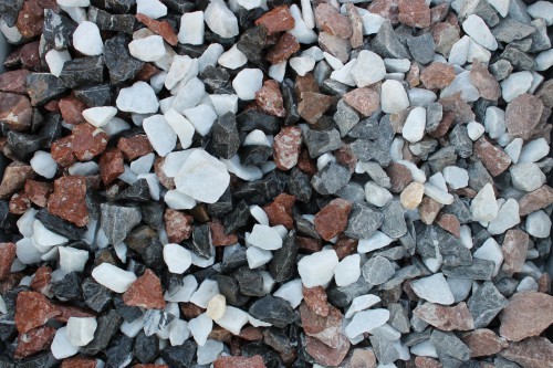 Kamenclub.ru: мраморная крошка (щебень крошка микс : белый-черный-розовый) фр. 20-40 мм. купить в Ярославле - заказать природный камень по низким ценам оптом с доставкой от производителя - kamenclub.ru
