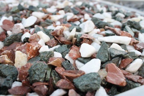 Kamenclub.ru: мраморная крошка (щебень крошка микс: белый-зеленый-розовый) фр. 10-20 мм. купить в Ярославле - заказать природный камень по низким ценам оптом с доставкой от производителя - kamenclub.ru